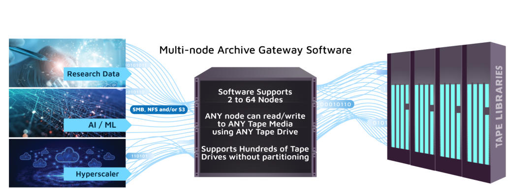 Supports Exabyte tape archives based on shared resources