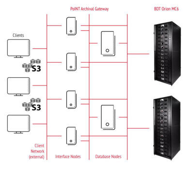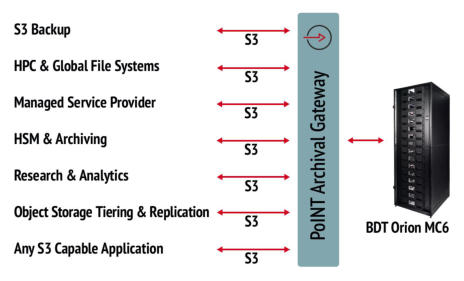 ORION is compatible with all common S3-to-tape gateways (object store to tape) and can be flexibly adapted to different infrastructure requirements